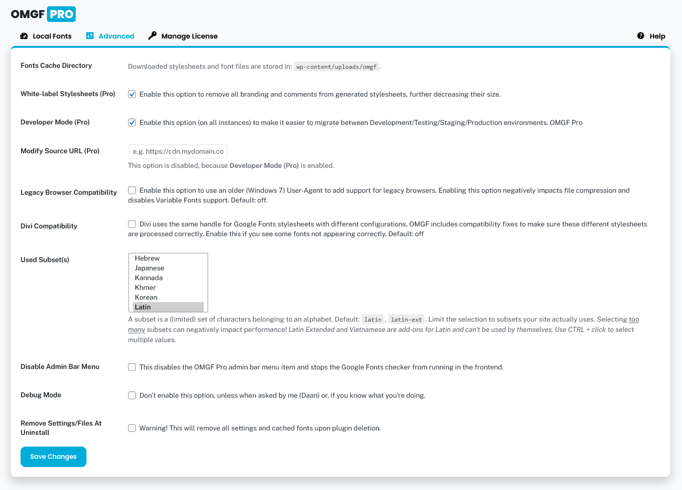 OMGF (Pro)’s advanced settings offer ways to fine-tune its behavior and make it work with your specific configuration, e.g. when you’re using a CDN.